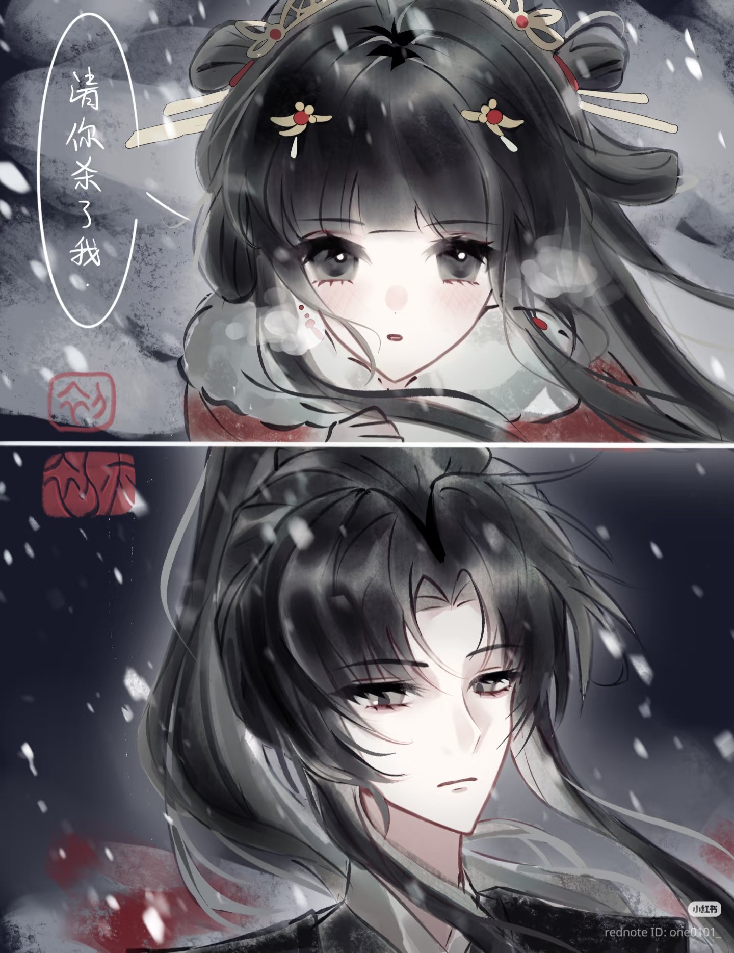 That day, in the snow, Shang Rong met a boy dressed in black. In his hand was a long sword stained with blood, snow covering his shoulders, and he possessed naturally clear and beautiful smiling eyes.
